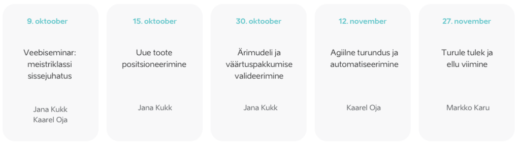 Meistriklassi käigus töötatakse läbi uue toote turule toomise olulisemad võtmekohad: